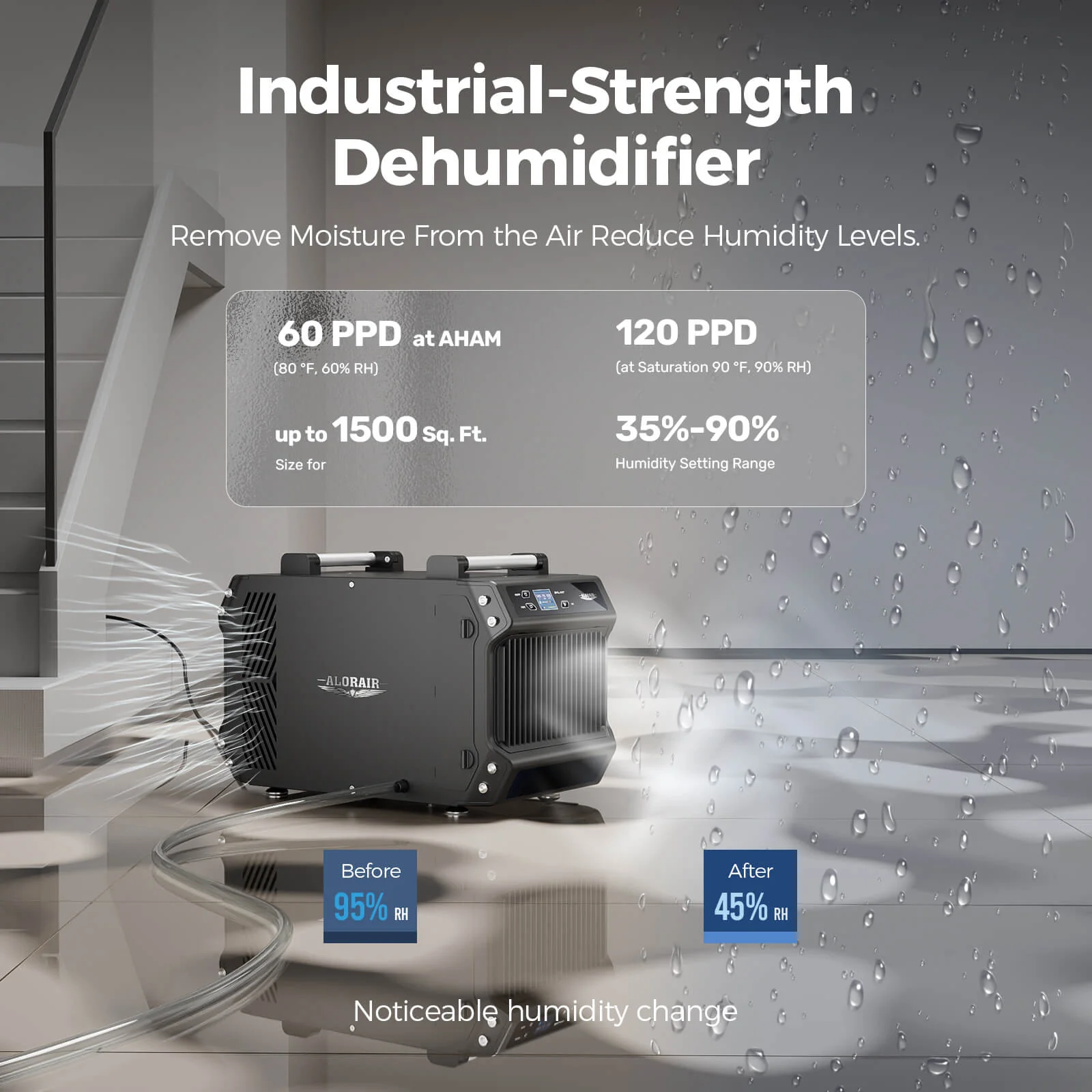 AlorAir 145 Pint Crawlspace Dehumidifiers with Drain Hose | Galaxy 60 | Size for 1800 Sq.Ft